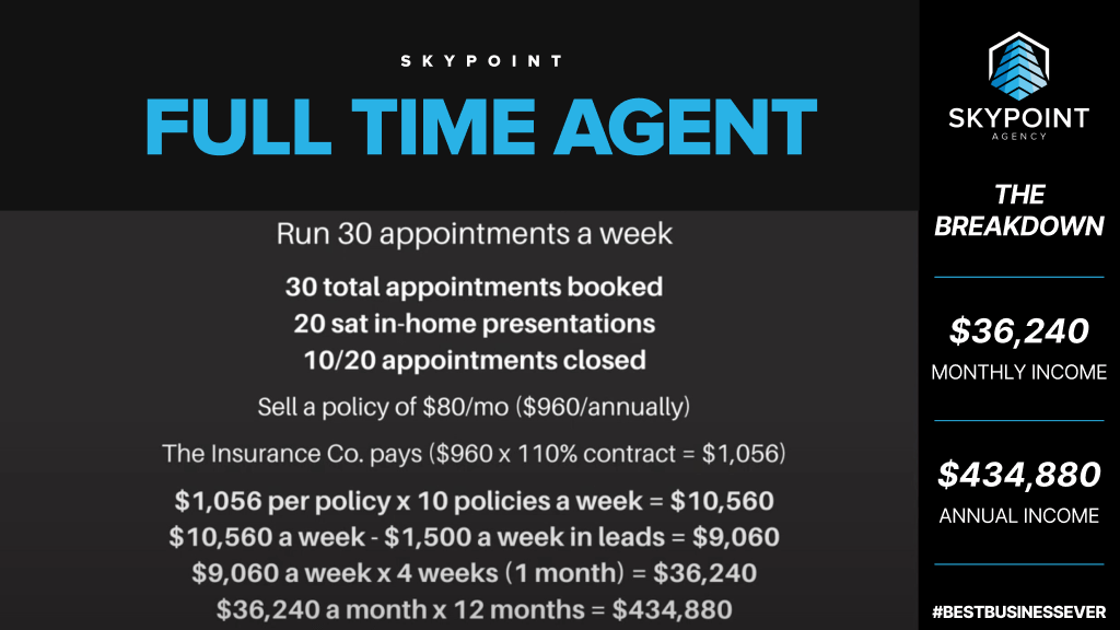 12-20 Appointments Sat on each week = 4-10+ Policies Closed.